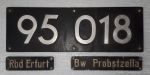 Werte Schildersammler, zu Abgabe steht das Lokschild der 95 018(NAlS) mit Rbd Erfurt/ Bw Probstzella. Die Schilder sind im Zustand "ab Lok". Die Lok wurde nie auf Oelhauptfeuerung umgebaut. Da sie nur in Thüringen beheimatet war würde ich das Schild gern gegen eines einer Harz-95er die beim Bw Blankenburg zu Hause war tauschen. Weiterhin suche ich Schmalspurlokschilder speziell IVK wie z.B. 99 557, 99 576 und 99 593 und Schilder von Harz-99ern. Aber auch andere Lokschilder der schmalen Spur oder der BR 58.30(nur Pockauer Platten) sind für mich immer von Interesse. Gerne freue ich mich über jedes Tauschangebot. MfG Rocco Kadow